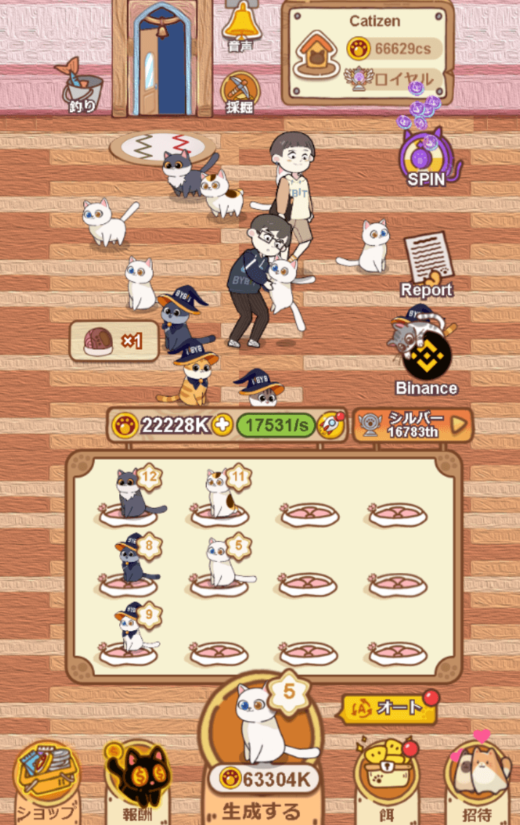 「Catizen」はかわいい猫を育成しながら、タップ操作やクエストクリアで得られるポイントを「キャットコイン」(仮名)に変換できるゲームです。NFT要素を取り入れたキャラクターのカスタマイズ機能も人気で、レアキャラ育成やイベント参加で追加のエアドロップを得られます。