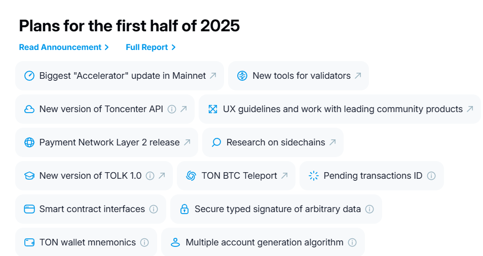 TON財団が公開しているロードマップには、今後の主な計画として以下のような機能提供が示されています。