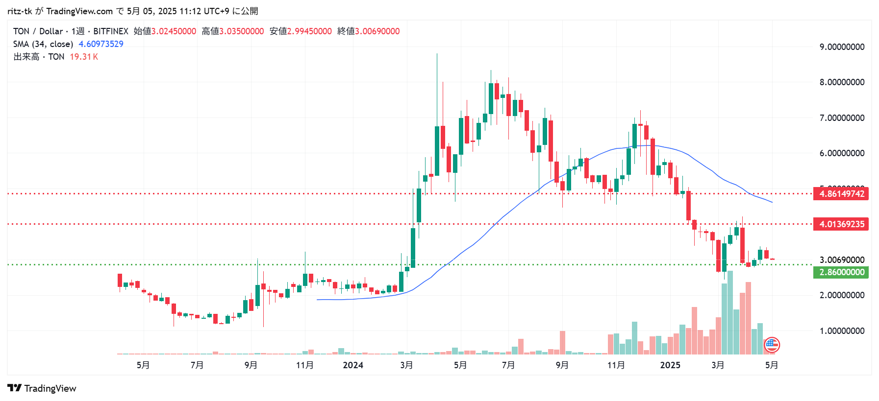 TON米ドル建て(週足:Bitfinex)出典:TradingView