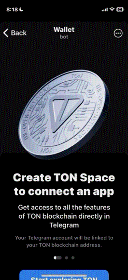 Bot画面のウォレット情報を使って、ほかのウォレットや取引所からTONを受け取ったり、友人にTONを送金できるようになります。