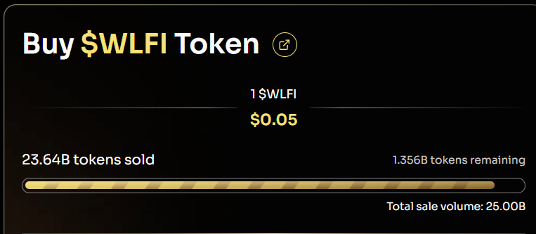 – 販売予定:250億WLFI – 販売済:236.4億WLFI – 残量:13.6億WLFI(1/30時点) |
