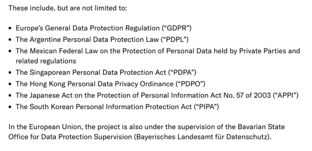ワールドコインは、世界各国の規制当局からのデータ・プライバシーと保護に関する調査に直面する中で、2024年3月に「ワールドコインに関する基本事実」を公開して、ワールドコインの運営の基本情報や規制対応について説明。その中でワールドコインは、利用可能なすべての地域で合法的に運営しており、データ収集とデータ転送を管理するすべての法律および規制に完全に準拠していると強調しました。