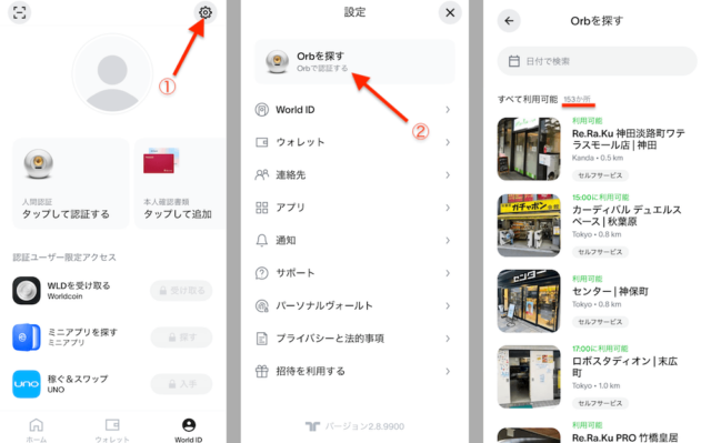 日本全国221箇所(2026年2月時点)に設置されたOrbでの虹彩認証を通して、以下の手順で取得可能です。
