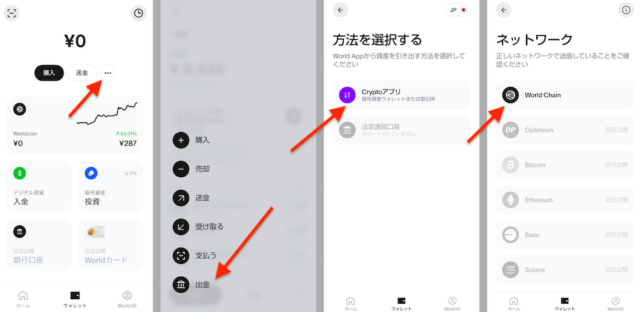 ワールドコインを売却するには、まずWorldアプリからメタマスクに送金し、ETHに変換。その後、国内取引所へ送金することで日本円に換えることが可能です。