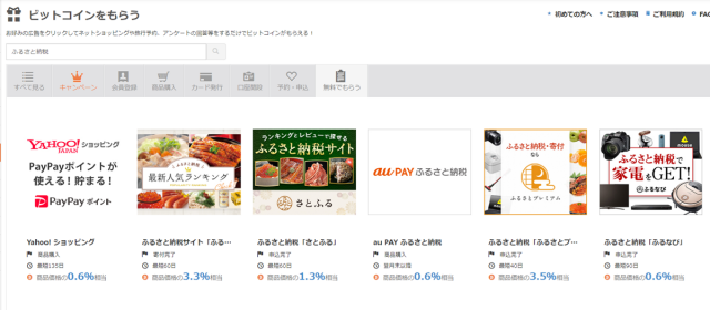 bitFlyerでは「ビットコインをもらう」というサービスがあります。。このサービスでは、ユーザーが指定された広告をクリックし、ネットショッピング、旅行の予約、アンケートの回答などを行うことで、報酬としてビットコインを獲得できます。