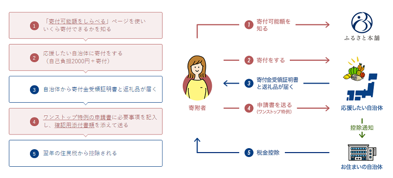また、税金の控除だけでなく、寄付金額に応じてお肉やお米、地域の特産品などを返礼品として受け取れるのです。このお得な「ふるさと納税」を利用することで、今以上に節税意欲が湧くのではないでしょうか。具体的な流れは、下記を参考にしてください。