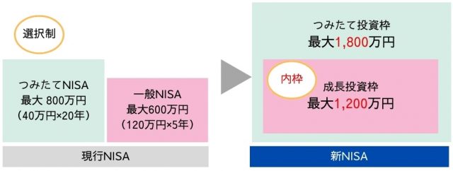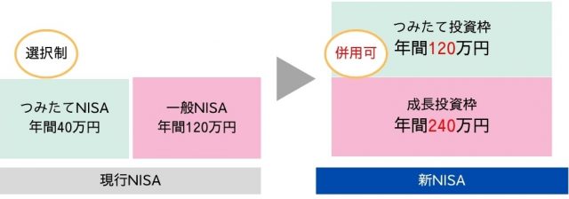 現行NISA制度では、年間投資枠は40万円のつみたてNISAと120万円の一般NISAの間で選択する必要があり、どちらか一方しか選べませんでした。しかし、新NISA制度では、この制限が解除されます。