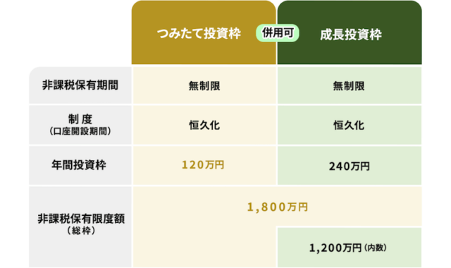 このルールで最も重要な点の1つが、NISAで投資できる上限金額が設定されていること。新NISAにおける年間の投資枠は、つみたて投資枠が120万円、成長投資枠が240万円、非課税保有限度額の総枠は1,800万円と決められています。