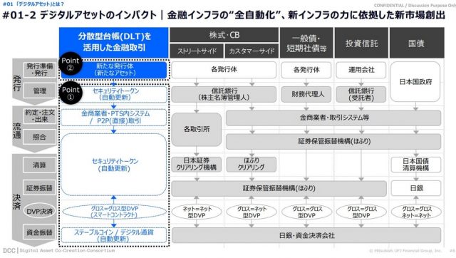 今後、ブロックチェーンの利用が取引所での取引や店頭取引のような流通部分のデジタル化にも大きな効果をもたらすと期待されています。