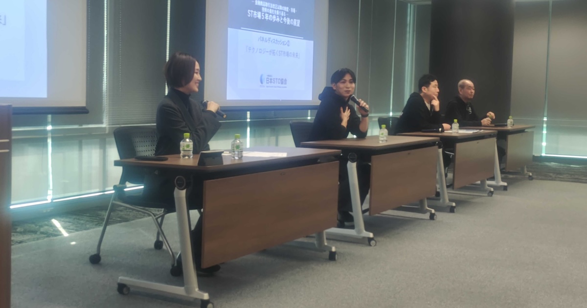 パネルディスカッション「セキュリティトークン業界全体の未来像」では、セキュリティトークン(ST)の発行・流通基盤を手がけるProgmat、Boostry、Securitize Japanの3社から代表者が登壇し、市場の現在地と今後の方向性を議論した。