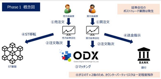 ODXは、最初に通常のマッチング機能とST基盤の連携機能から始める予定です。次の段階、Phase2では、即時清算決済(RTGS:Real Time Gross Settlement)を用いたDVP(Delivery versus Payment)を実現し、カウンターパーティリスクを排除したSTのセカンダリー市場の構築を目指します。更に、ステーブルコインを使用した決済や、スマートコントラクトの活用によって、ポストトレード業務の効率を向上させる計画も進行中です。