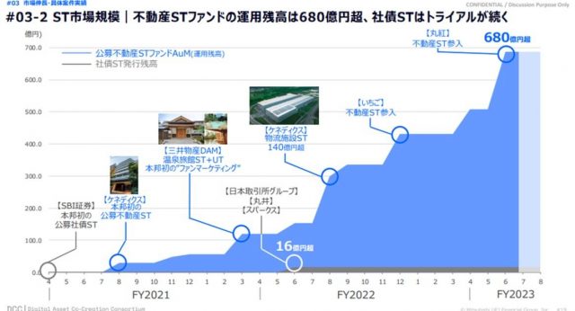 日本のデジタル証券(ST: Security Token)市場は、2020年の立ち上げから2023年6月までの3年間で急成長を遂げています。特に不動産関連のSTが市場規模を牽引しており、三菱UFJ信託銀行によると2023年6月時点にSTの運用残高は680億円に上ります。