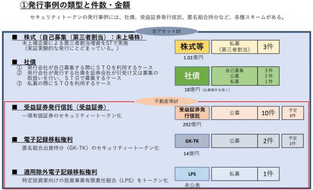 デジタル証券(ST)の発行は、主に「受益証券発行信託」と「社債」が中心となっています。この傾向は経済的要因に加え、帳簿の書換に関する法的要件(帳簿の書換や債務者への通知等)が影響しています。この仕組みは、プライベートまたはコンソーシアム型のブロックチェーン上での記録の更新と整合性を保ちやすいものとなっています。